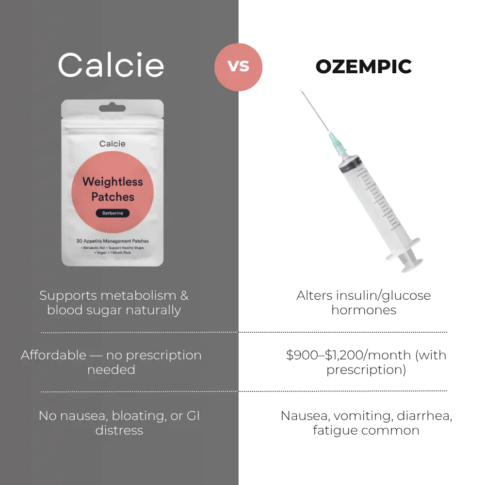 Calcie kombiniert klinisch dosiertes Berberin mit fortschrittlicher Pflastertechnologie für maximale Absorption, Appetitkontrolle und Unterstützung des Blutzuckerspiegels –ohne Pillen, Injektionen oder Stimulanzien.
